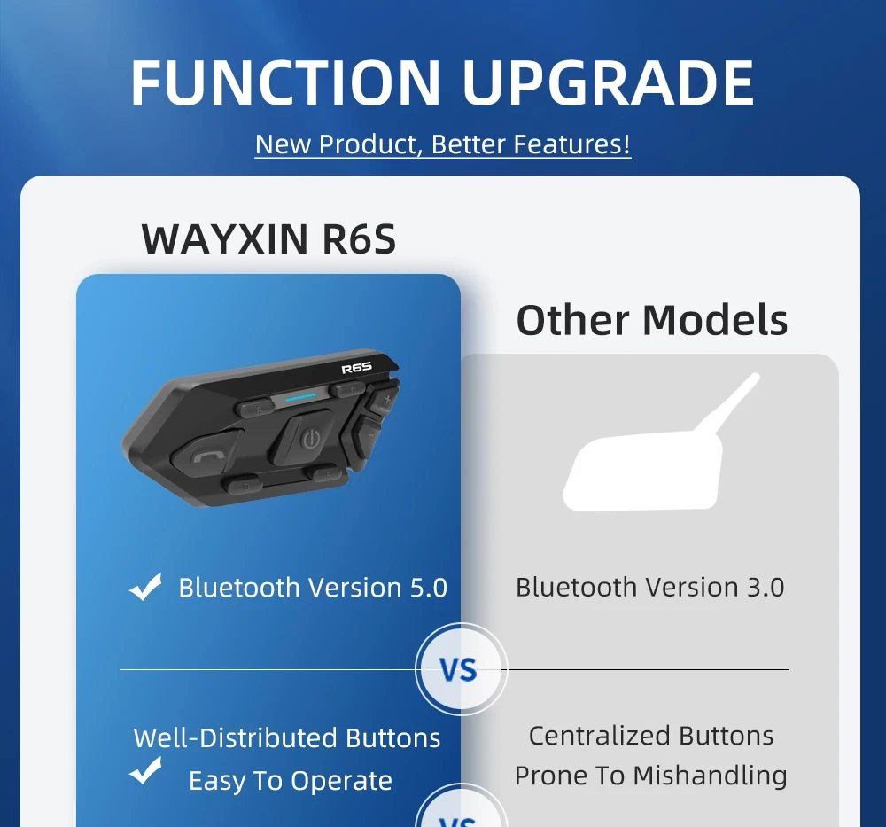 【Görünüm düğmesi design】: wayxin r6s kask kulaklık genel olarak abs su geçirmez malzeme kullanır, düğme tasarımı gerçek kullanım sahne doğrultusunda daha fazladır ve sürüş sırasında bile kolayca çalıştırılabilir
