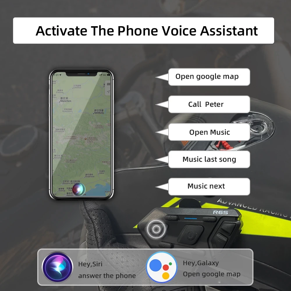 【Gps eşleştirme, intercom】: r6s motosiklet interkom gps, mp3 ve diğer markaların bluetooth walkie-talkie ile bağlanabilir ve eşleştirilmiş bir dahili bluetooth 5.0 çip vardır, ve google asistan/siri otomatik cevap fonksiyonuna sahiptir