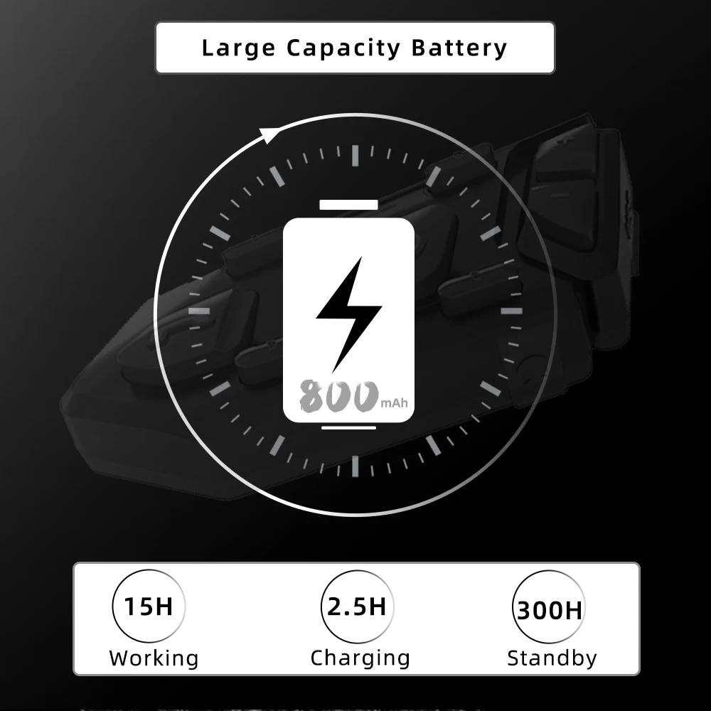 【Uzun çalışma süresi 】: r6s motosiklet iletişim sistemi dahili 800mah lityum pil ile tip-c arayüzü, şarj süresi sadece 2.5h, sürekli konuşma süresi 15h, bekleme 300h